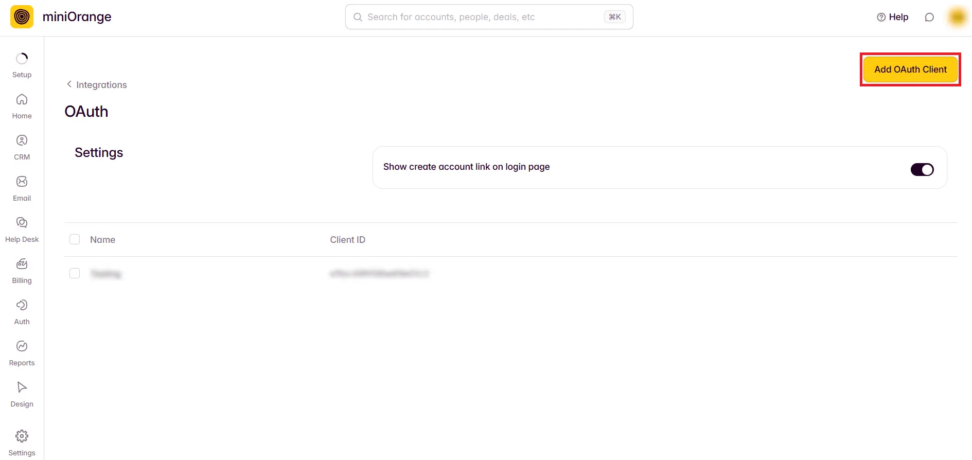 • Click Add OAuth Client to create a new application.