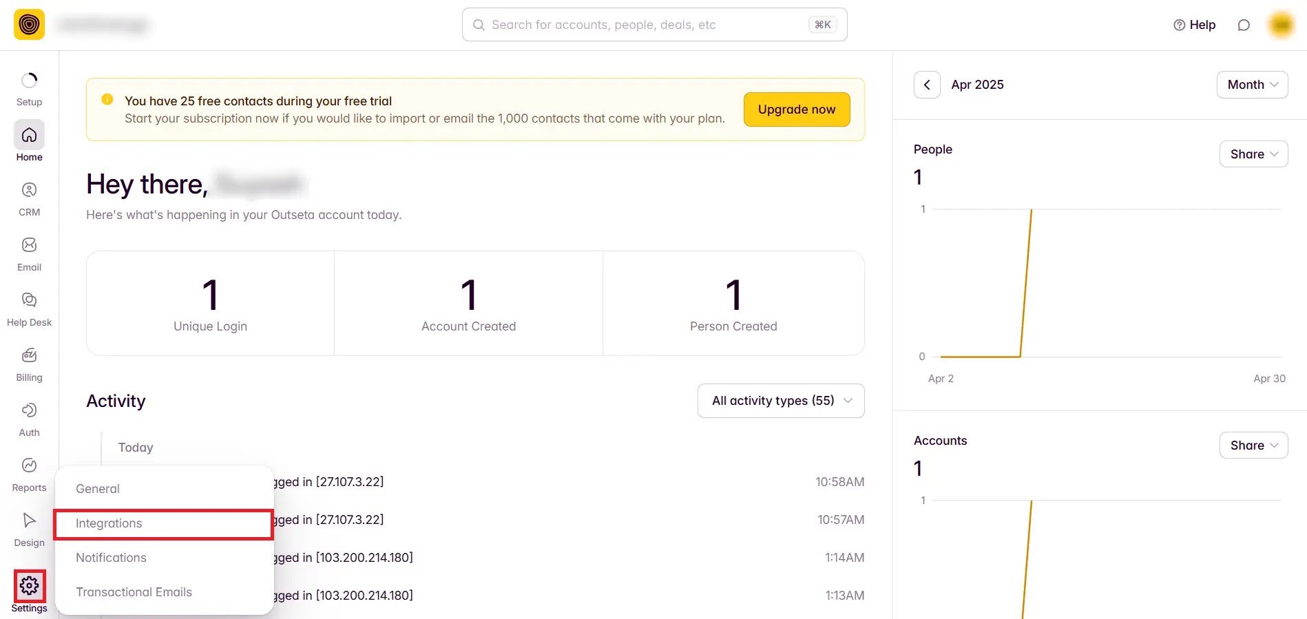 • In the left-hand navigation panel, go to Settings > Integrations.