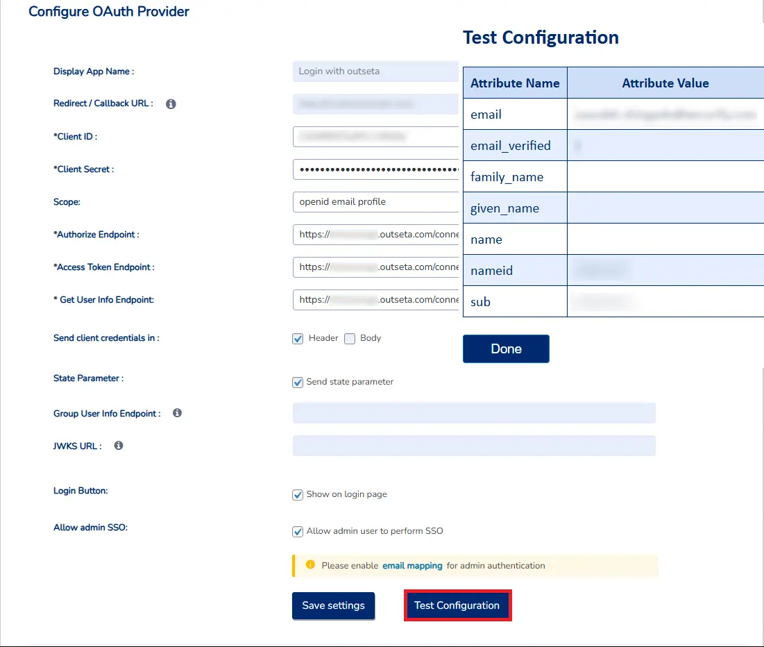 • WordPress Outseta SSO - OAuth Test Configuration
